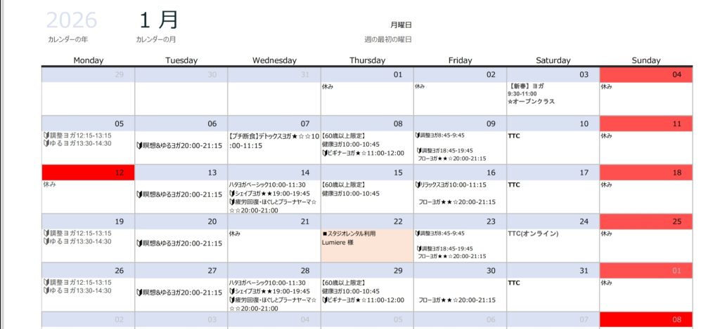 【1月🧘♀体験レッスン】