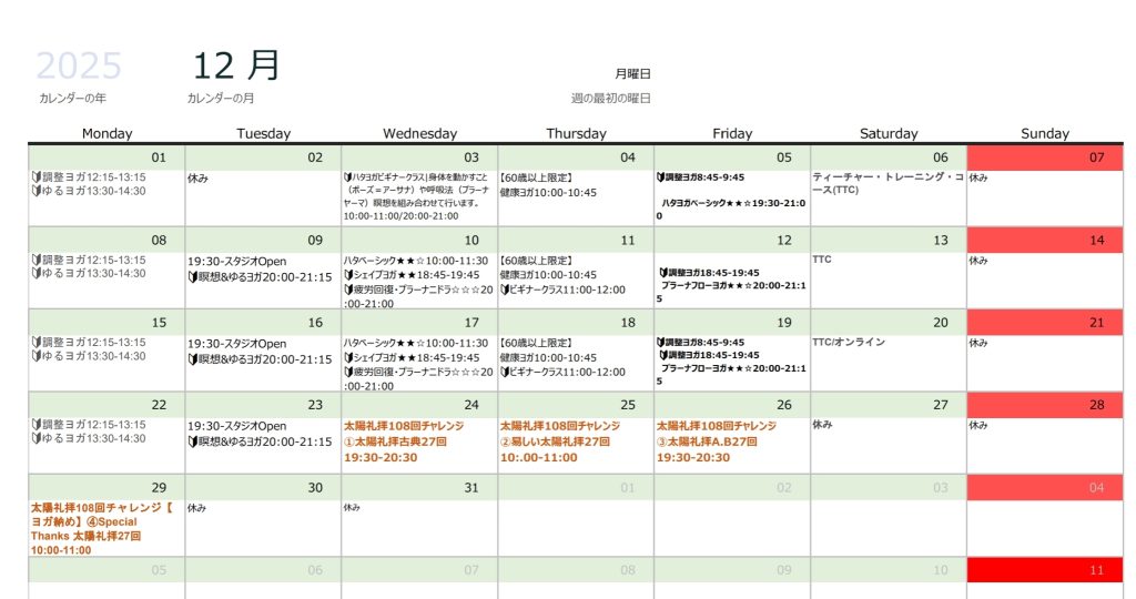 ④ 12/29(月)10:00-11:00【ヨガ納め】Special Thanks 太陽礼拝